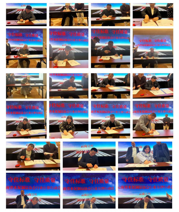 會上代表們充分討論,相互交換意見。會長、副會長、云南各地龍頭企業(yè)負(fù)責(zé)人率先帶頭表態(tài),嚴(yán)格按照標(biāo)準(zhǔn)生產(chǎn)管道,與會各企業(yè)代表經(jīng)過充分溝通交流之后,對“既要保訂單、更要保質(zhì)量”達(dá)成高度一致,形成《云南省水泥制品協(xié)會行業(yè)自律書》,后在與會代表的共同鑒證下,各企業(yè)法人代表,莊重地在《自律書》上簽字蓋章。